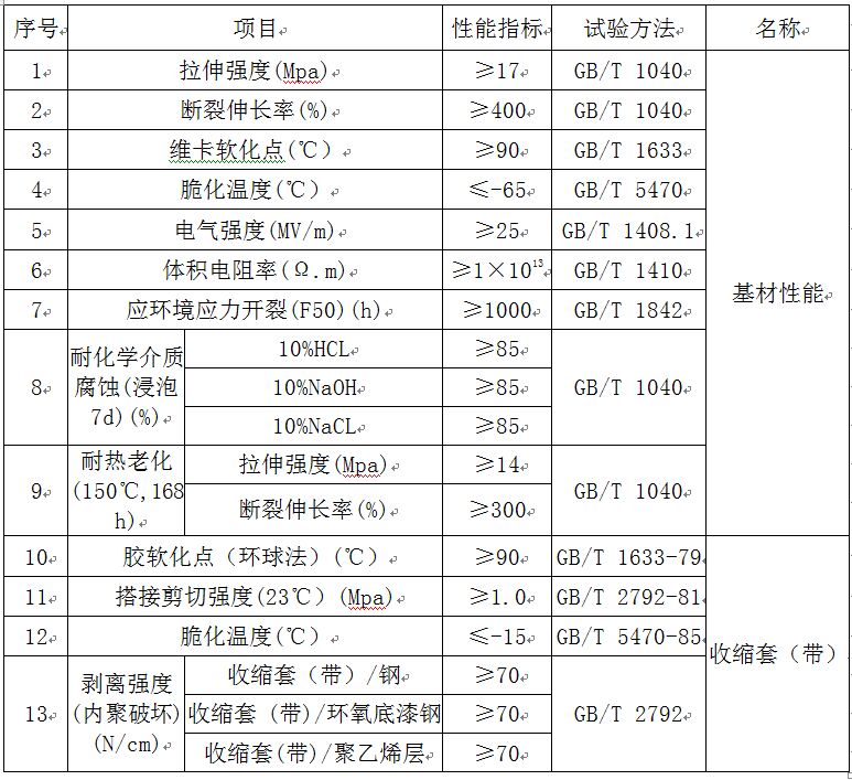 4.熱收縮套(帶)性能指標: